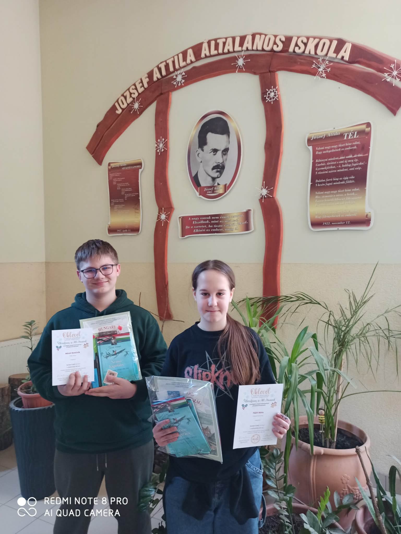 PÁLFI DÓRA és MÁCSI DOMINIK csapata I. helyezett lett. Az oklevél mellett könyvjutalomban is részesültek diákjaink.