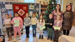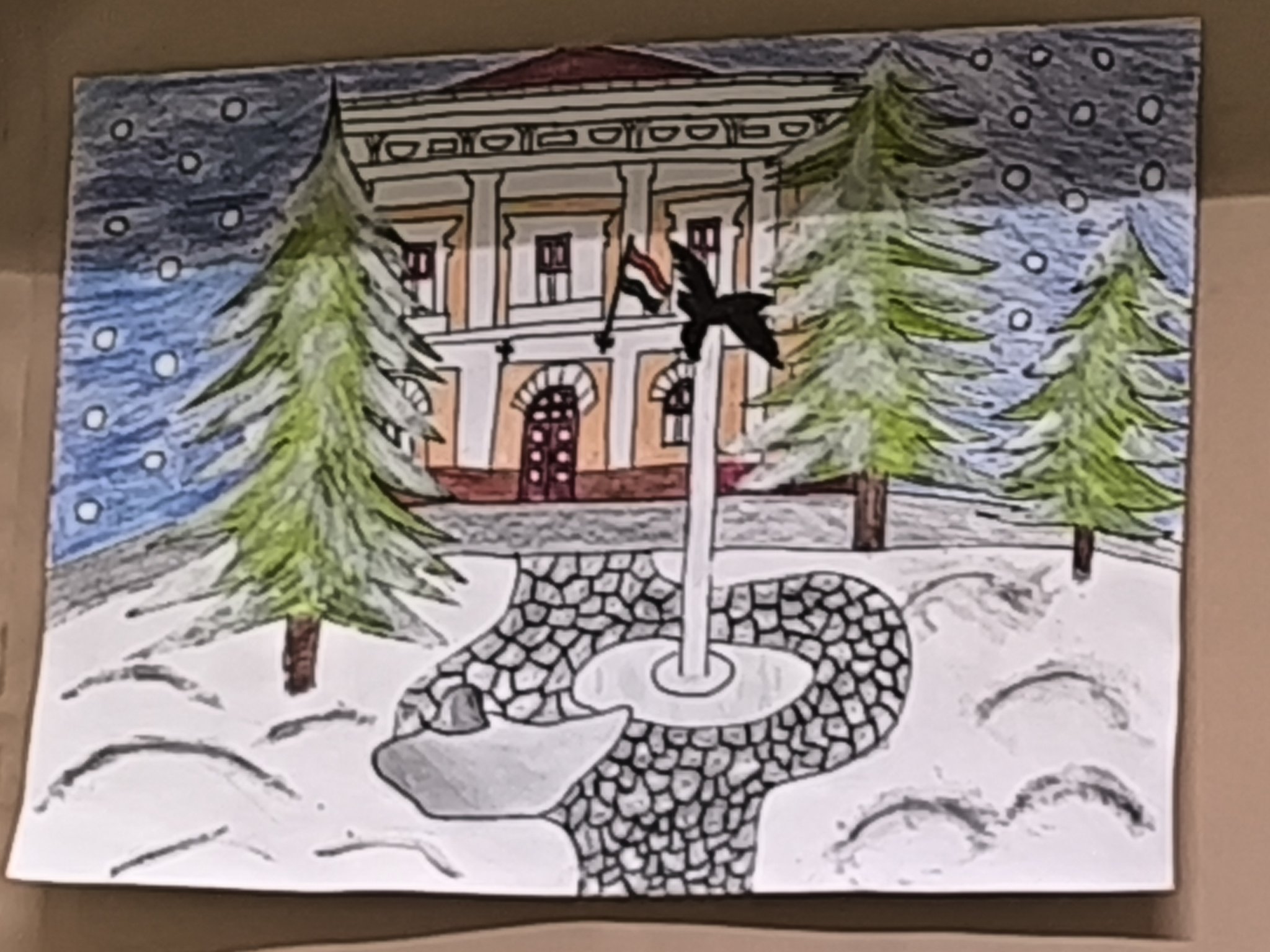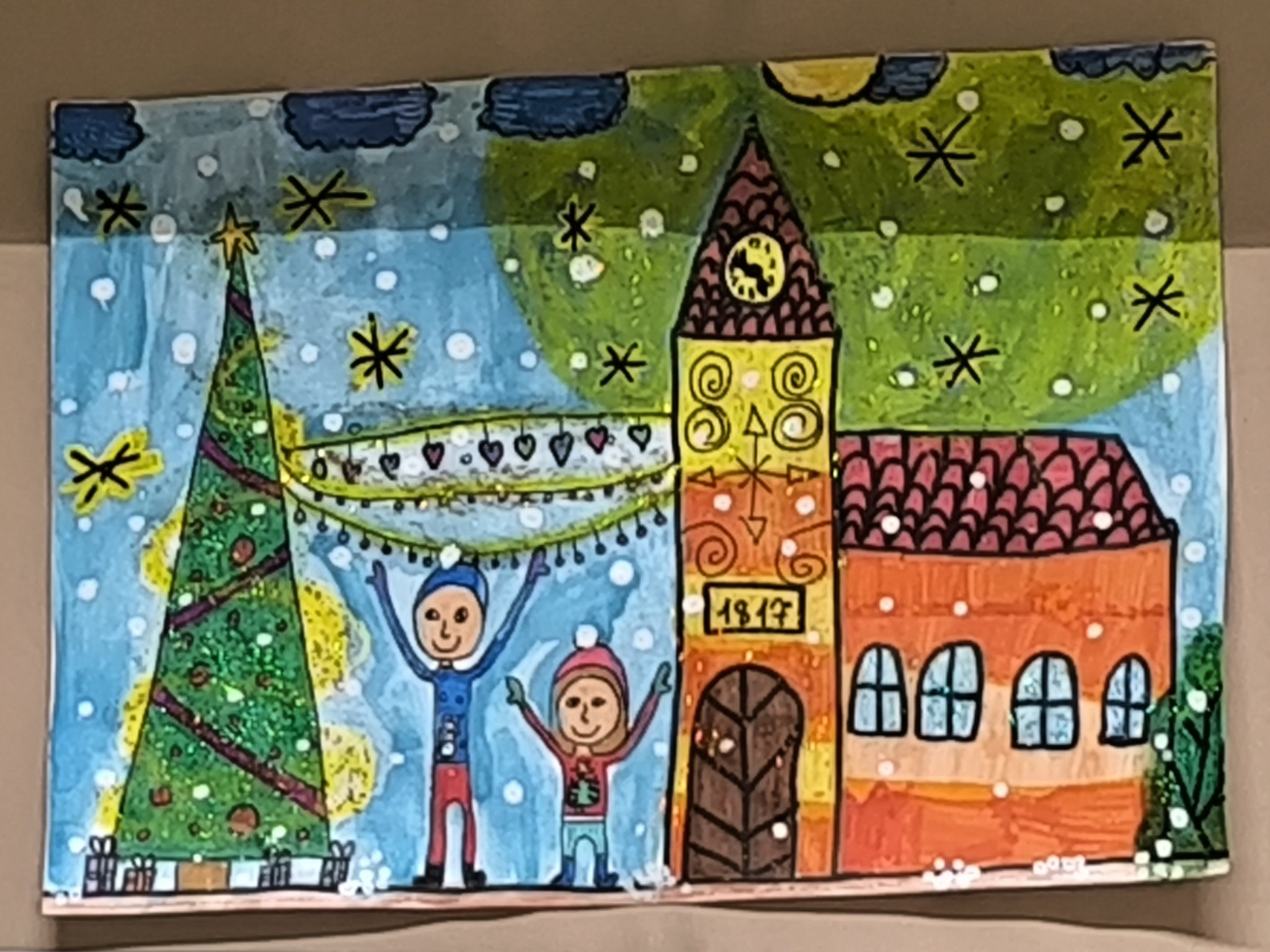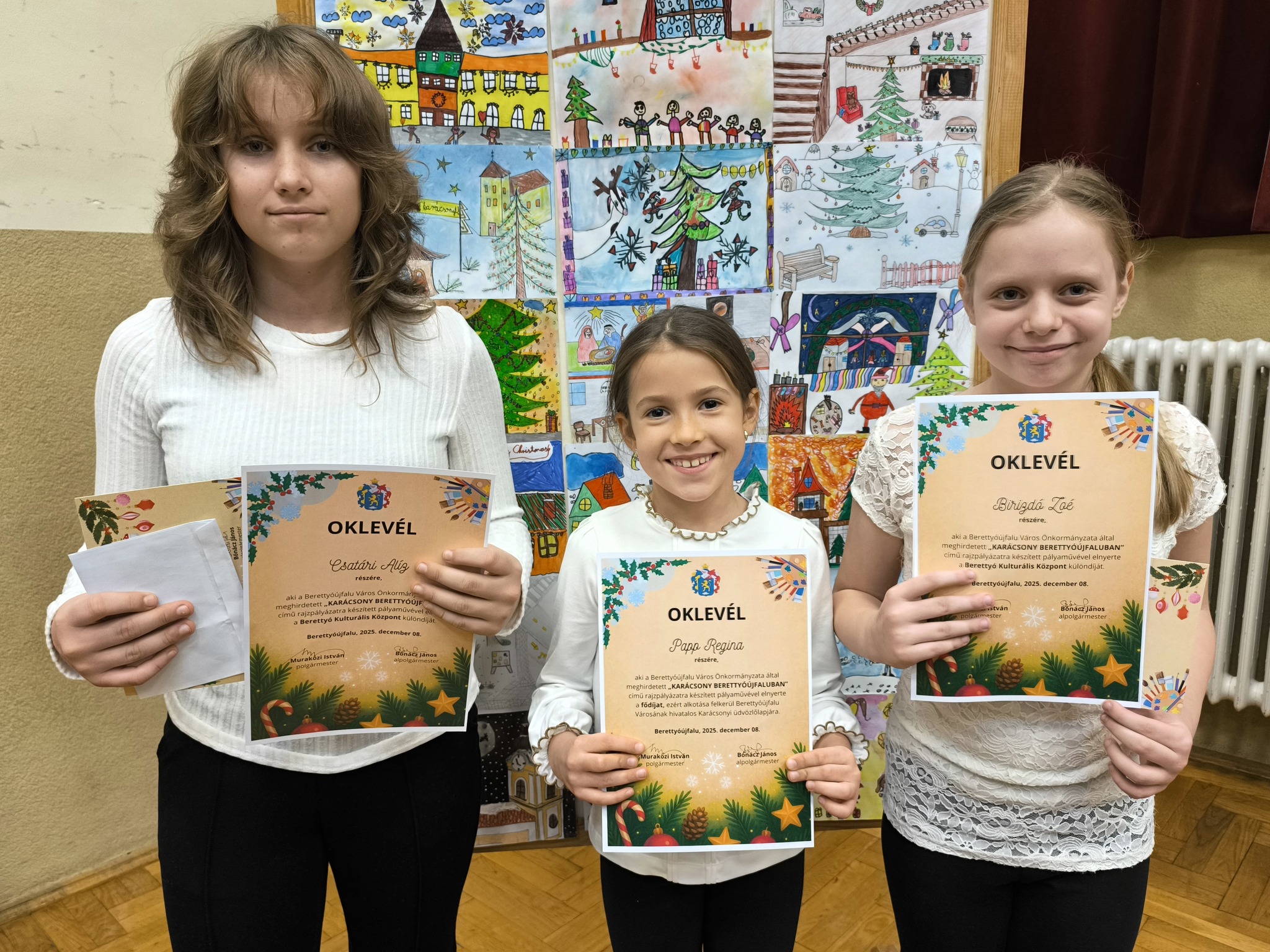 A zsűri döntése alapján Papp Regina, a 3.b osztály tanulója nyerte el az első helyet, így az ő rajza díszíti Berettyóújfalu idei karácsonyi képeslapját.